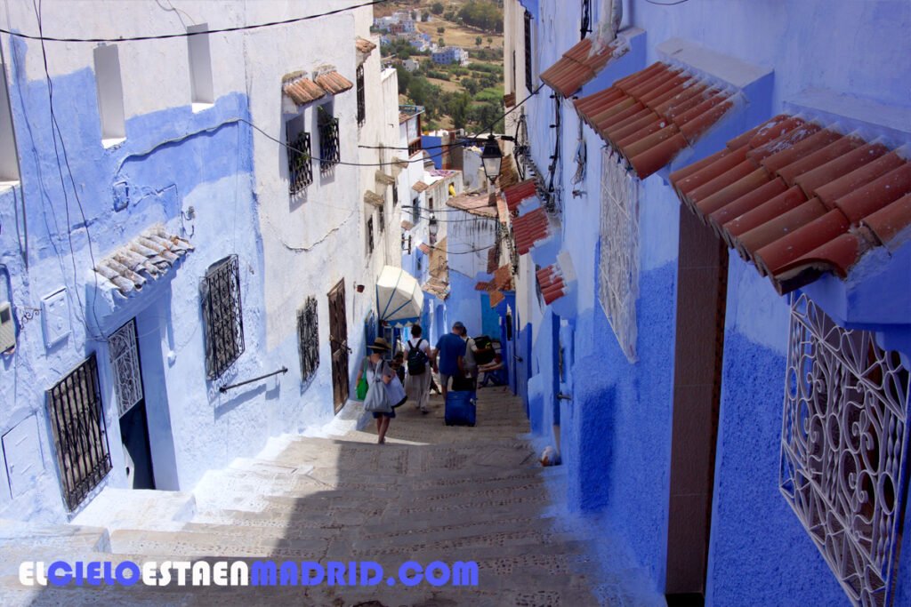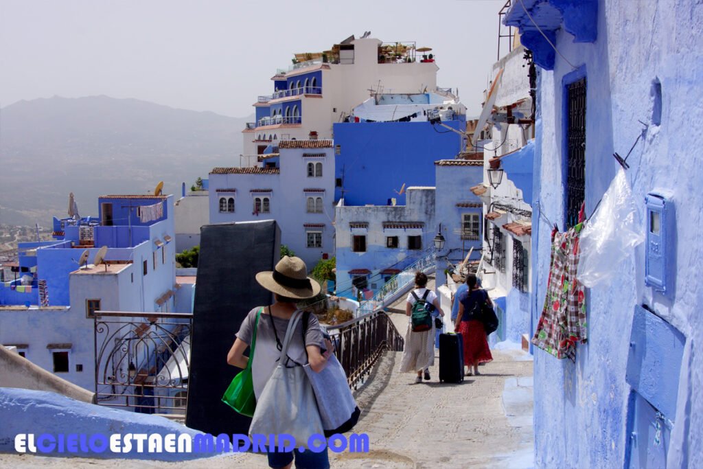 Pero, volviendo al alojamiento. Vamos descendiendo por callejuelas hasta que nos indican que giremos a la izquierda. Una de las casas azules, muy vistosas, pero no crees que -por la fachada- te vayas a encontrar un alojamiento tan bueno.