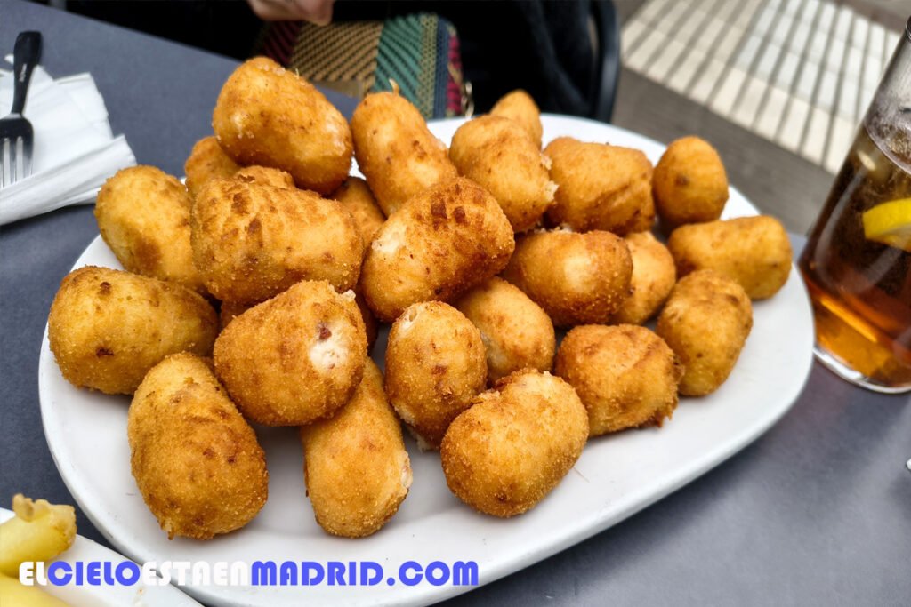 A continuación vino todo de golpe. Y te asusta un poco. Unas croquetas que, como podéis ver no venían solas. Creo que eran dos o tres docenas. De sabor bastante aceptable y bien fritas.