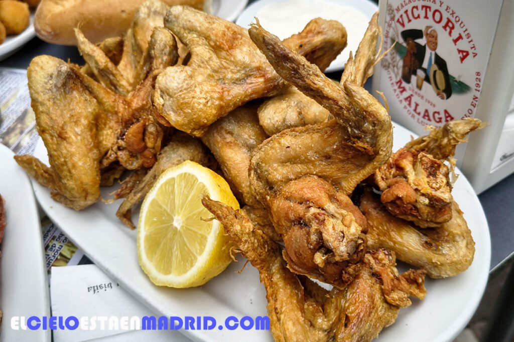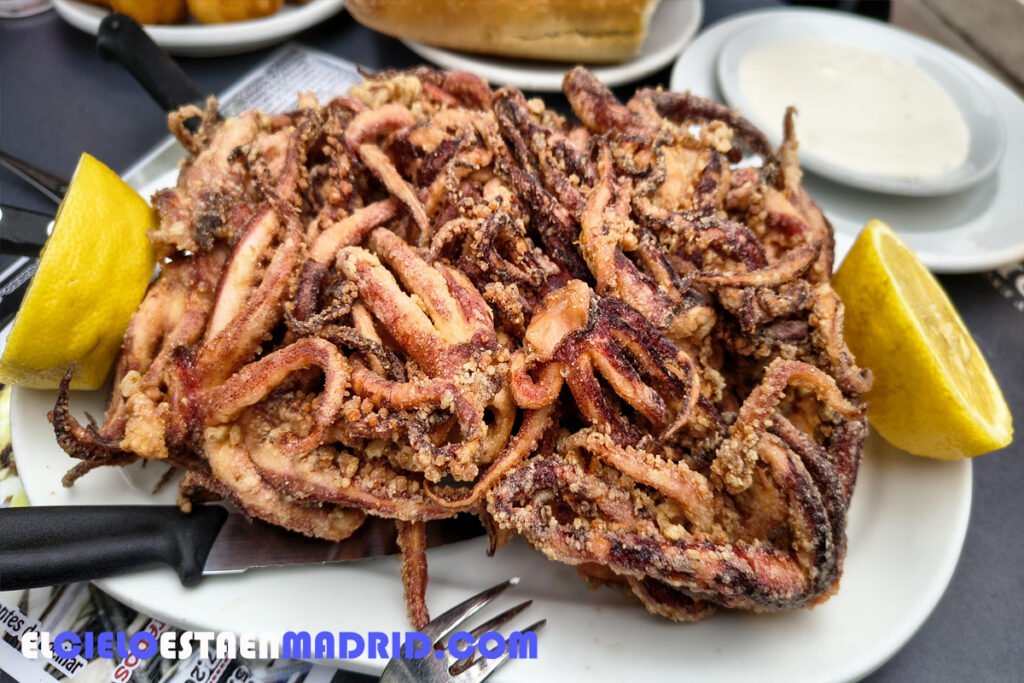 Al mismo tiempo, una ración de rejos que por un momento pensé que me iban a atacar. Parecía un plato repleto de seres extraterrestres a punto de atacar. Una cantidad absolutamente desproporcionada. Pero bien fritos y muy buenos. Si te gustan los rejos, éste es el sitio donde puedes comer lo suficiente como para hartarte para algún tiempo.