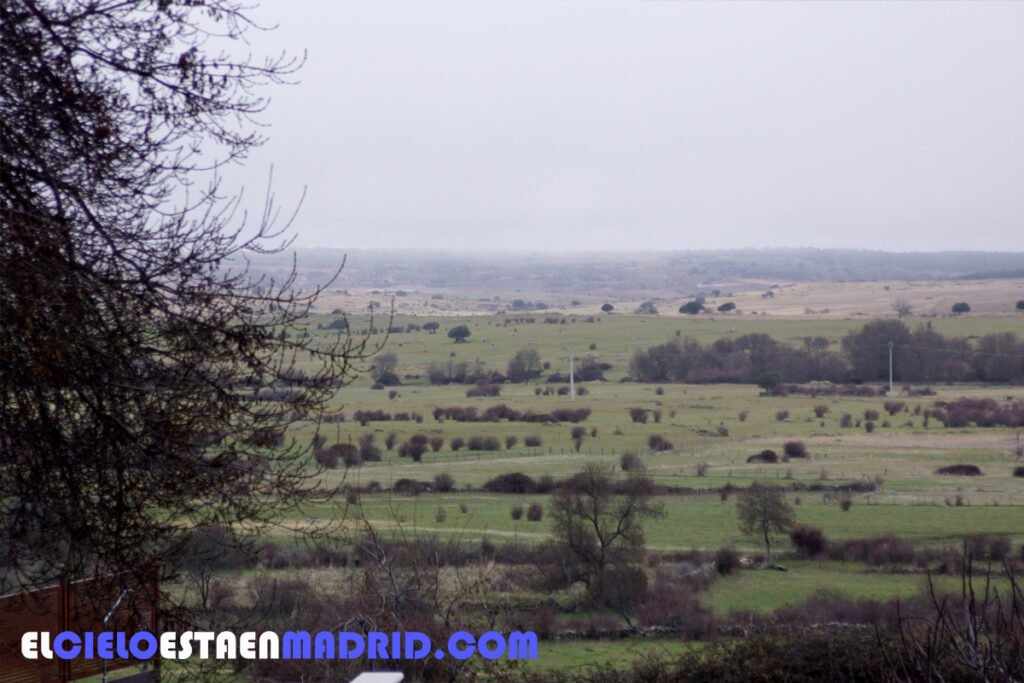La estepa segoviana desde nuestra terraza de la habitación, con una niebla muy densa.