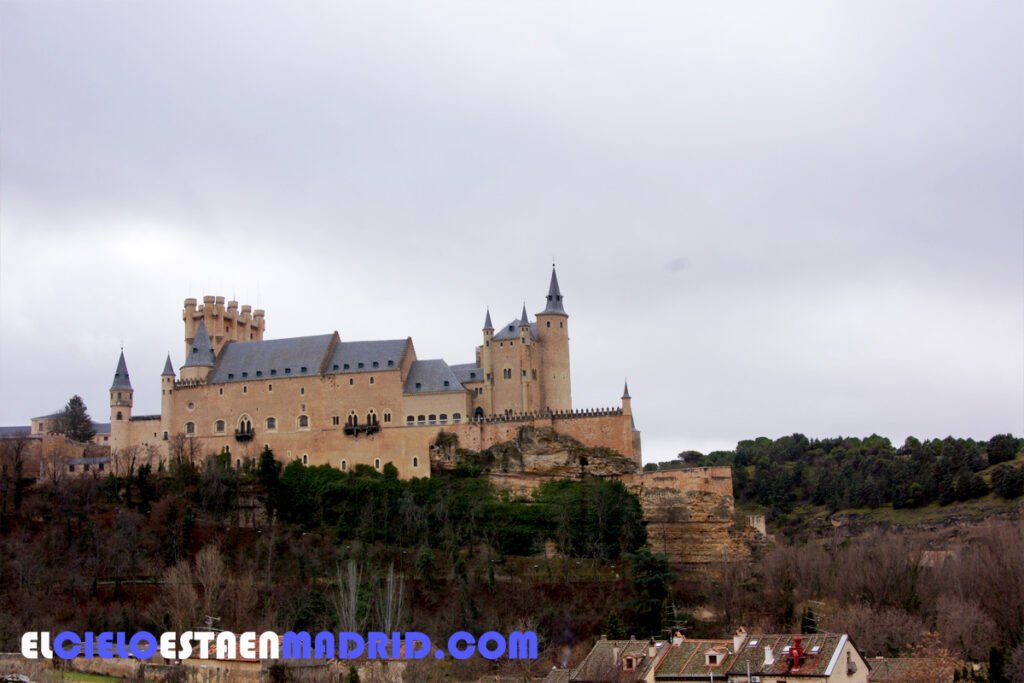Vista del Alcázar de Segovia desde la entrada a la iglesia de la Vera Cruz.